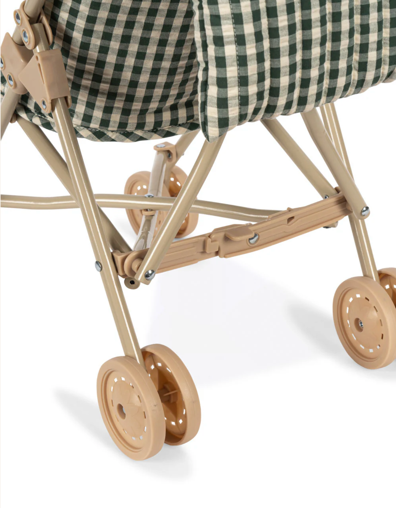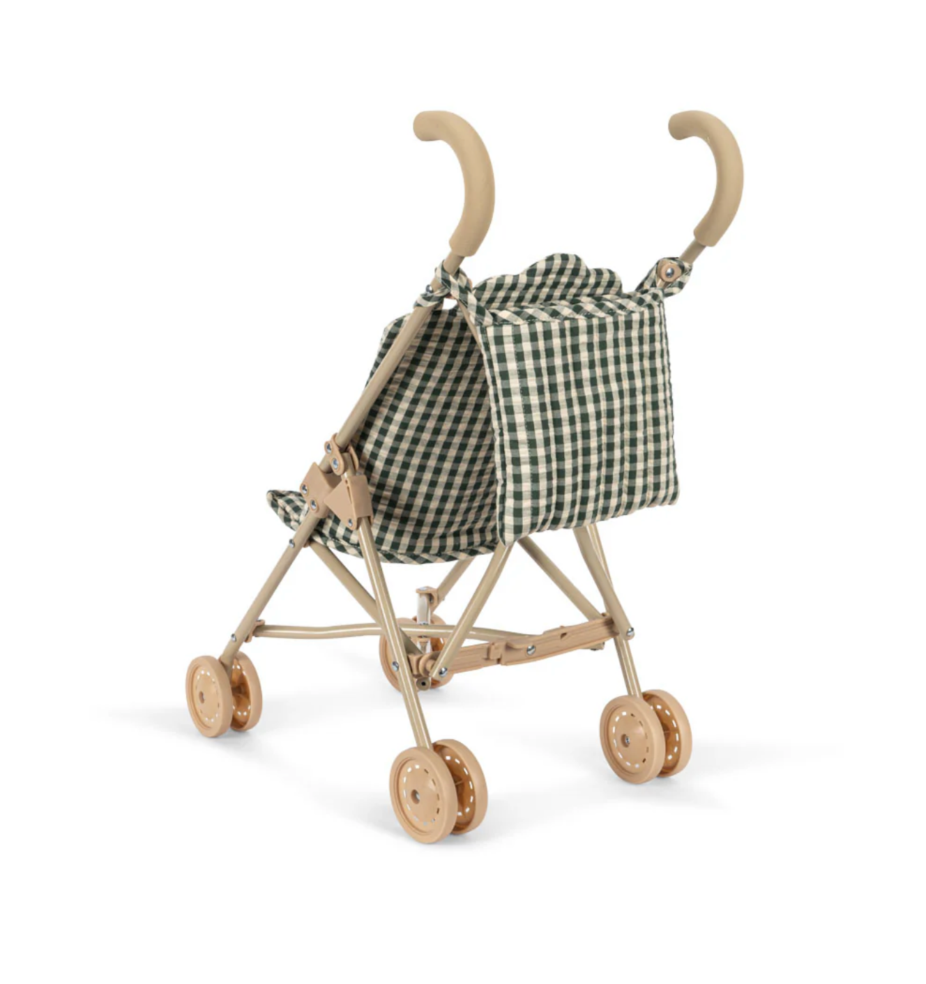 Adorable poussette pour les peluches et poupées de votre mini. La poussette dispose d'un harnais, d'un sac de transport et de roues doubles sur les quatre pieds pour plus de stabilité.