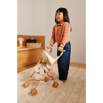 Adorable poussette pour les peluches et poupées de votre mini. La poussette dispose d'un harnais et de roues doubles sur les quatre pieds pour plus de stabilité.