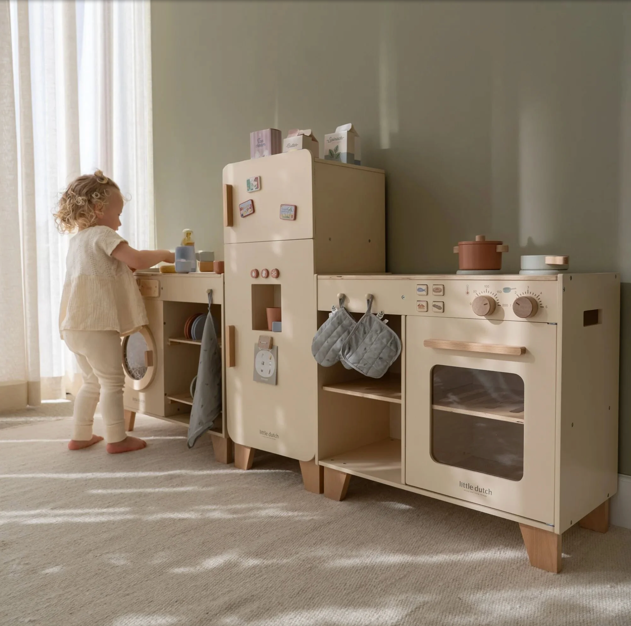 Combinez la station de cuisine avec le réfrigérateur ou le set de lave-linge et lave-vaisselle pour créer une cuisine de jeu complète. Quel est le menu d'aujourd'hui ?