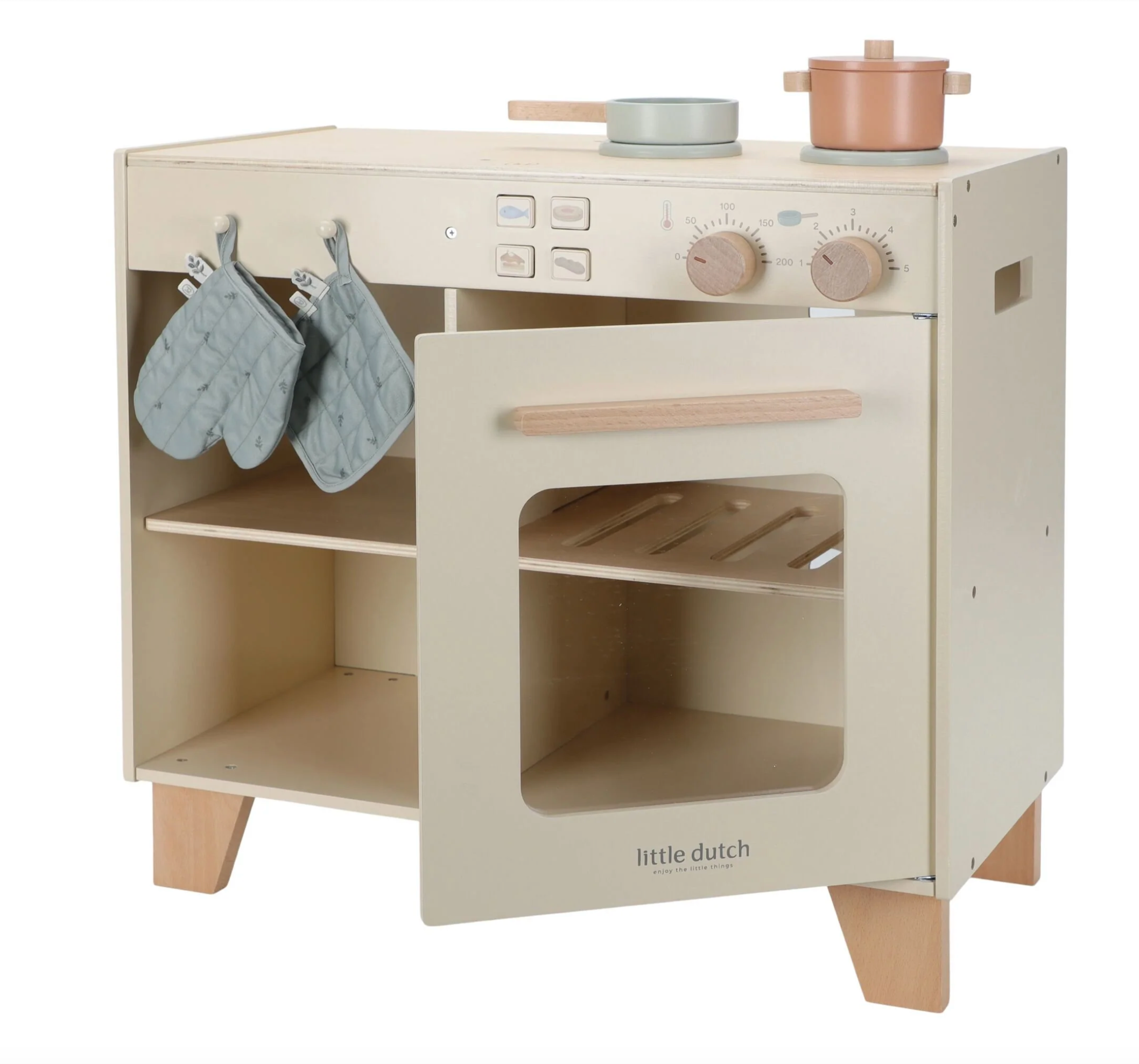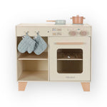 Petits chefs, aux fourneaux ! Cette magnifique station de cuisine en bois est parfaite pour préparer les plats les plus délicieux. Faites cuire un gâteau dans le four ou cuisinez des légumes frais sur la cuisinière. Le set comprend deux casseroles, un gant de cuisine et un mur de four, et est équipé de boutons-poussoirs avec illustrations pour plus de réalisme.