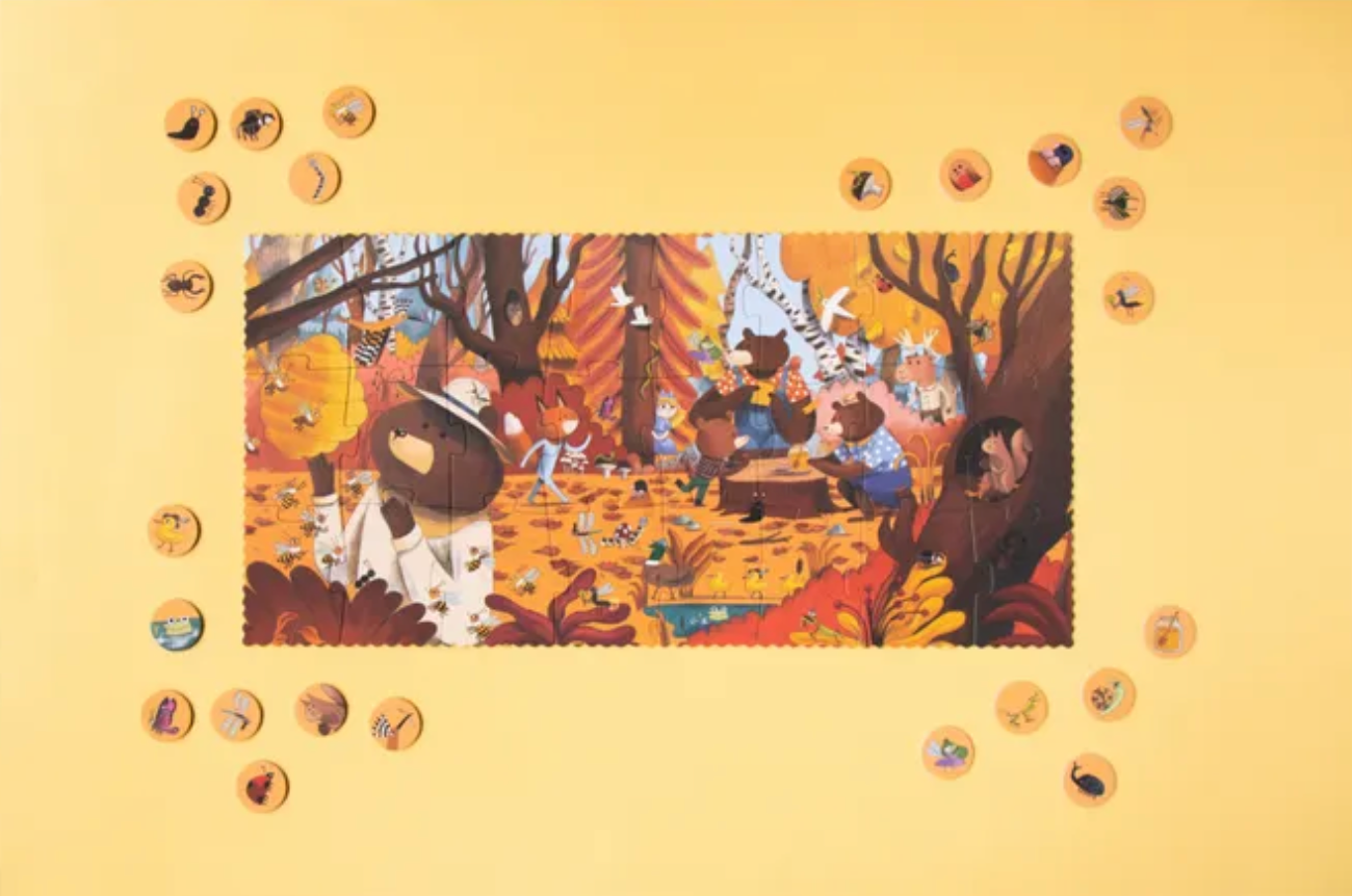 Un puzzle de 24 pièces pour les plus jeunes et un jeu d'observation. Découvrez la forêt et les animaux qui l'habitent !