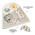 Les puzzles à chevilles en bois de Lalee sont fabriqués dans de jolies couleurs sable et à partir de bois provenant d'une source d'approvisionnement responsable. Il est peint avec des peintures à base d'eau exemptes de substances nocives, ce qui permet à votre enfant de l'utiliser en toute sécurité.