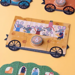 Tout le monde dans le train ! Une locomotive et des wagons très spéciaux avec des voyageurs très particuliers : ours, cochons, lapins, singes, loups, pingouins et bien d'autres feront un voyage des plus amusants ! Tchou-Tchou ! Nous vous attendons !