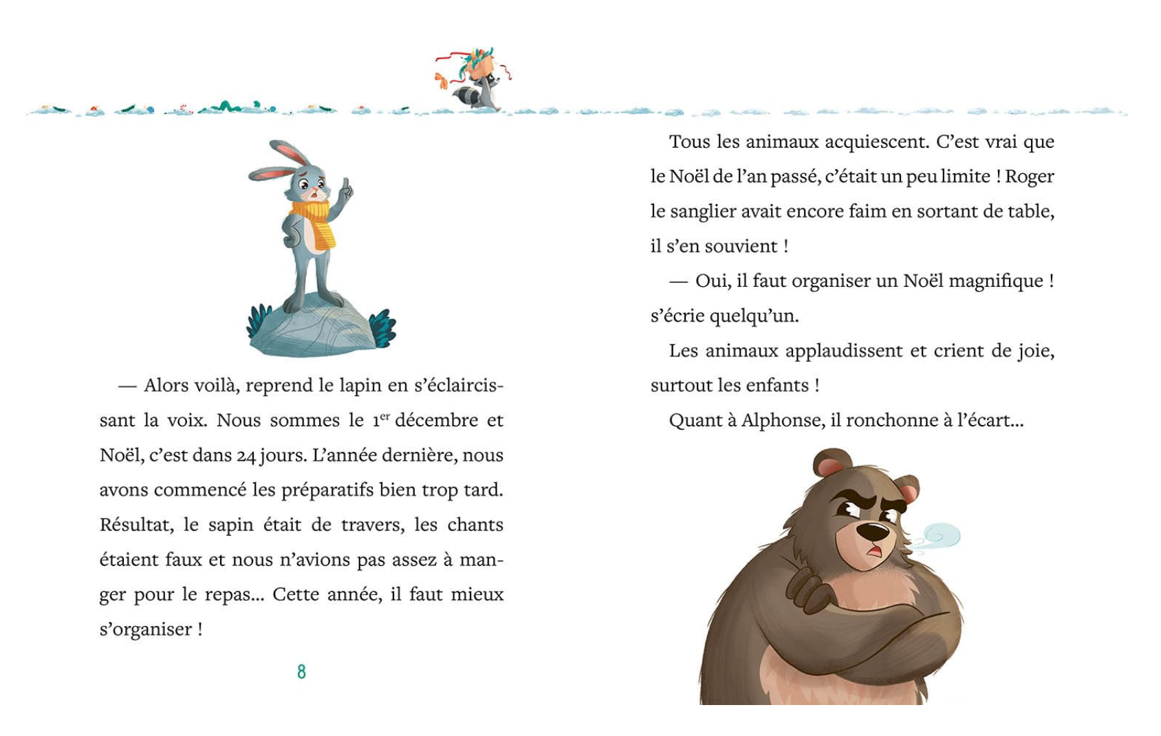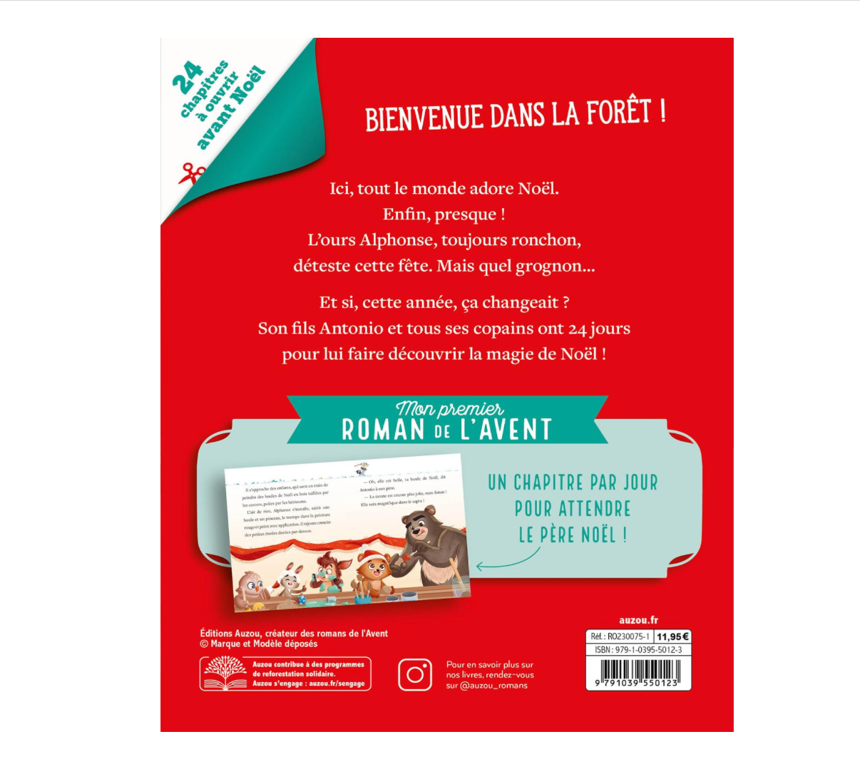 Dans la forêt, tous les animaux adorent Noël. Enfin, presque tous ! Alphonse, un ours brun ronchon et jamais content, ne participe pas aux préparatifs de la fête. Et le petit Antonio aimerait tant partager la magie de Noël avec son papa... Heureusement, il a 24 jours pour le faire changer d'avis et organiser le plus beau des Noëls !