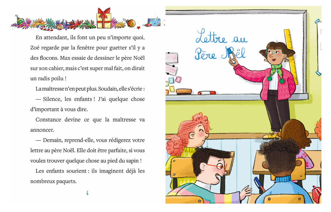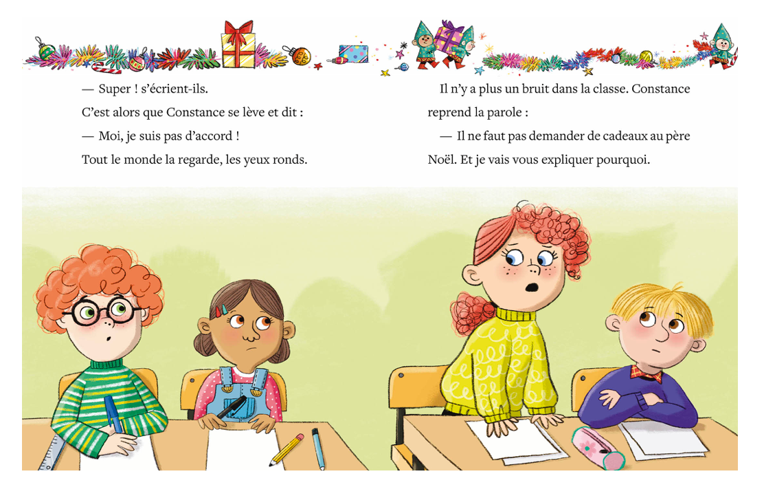 "Constance et ses camarades de classe écrivent une drôle de lettre au père Noël : cette année, ils ne veulent pas de cadeaux !