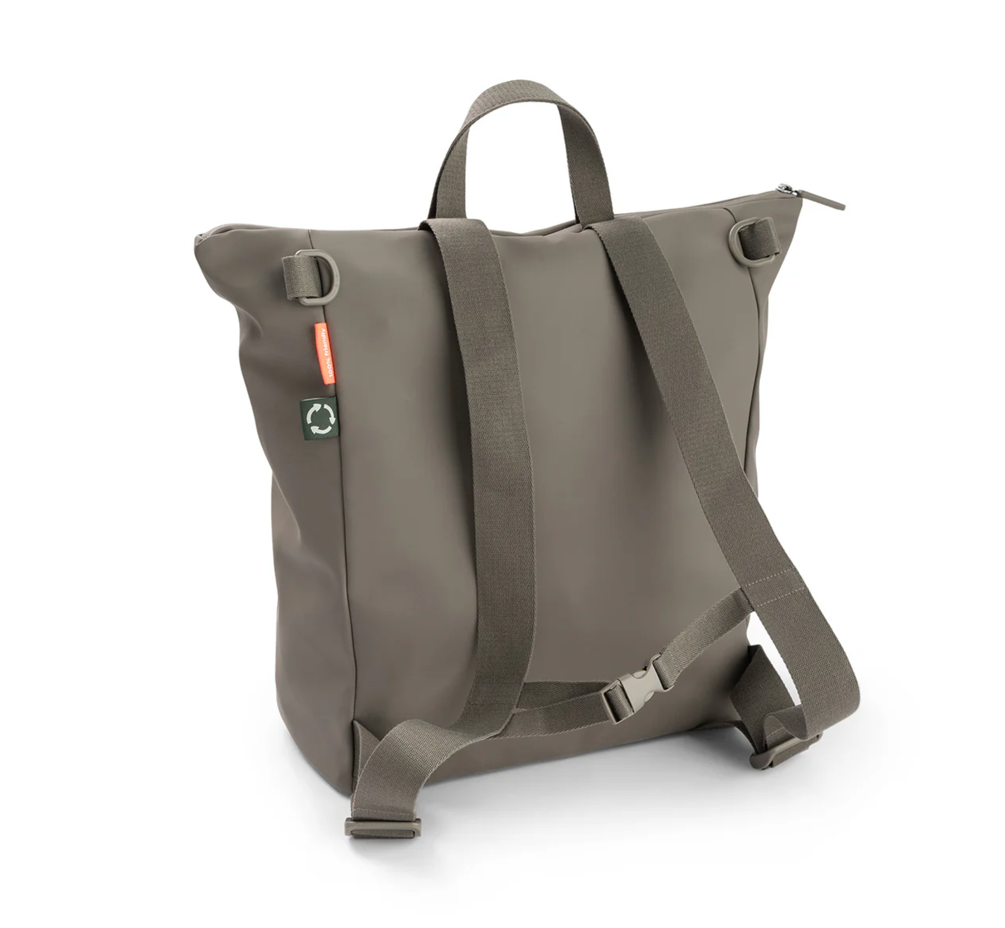 • Fabric: 100% recycled polyester with PU coating. Lining: 100% recycled polyester. Changing pad: 100% recycled polyester with PU coating. Filling: Polyester fibres.
