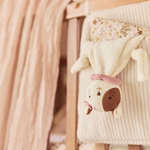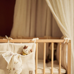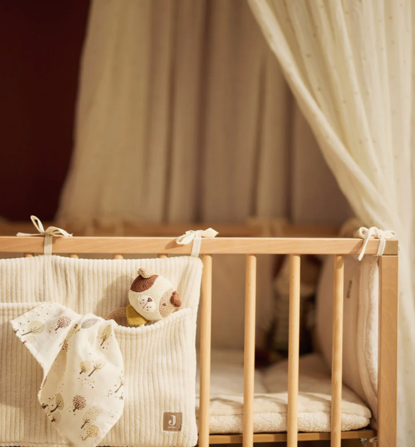 Votre mini a probablement déjà plein de jouets – mais où les mettre ? Ce sac de rangement en tissu côtelé est la solution idéale ! Pratique et joli, il se fixe facilement au parc ou s’accroche au lit dans la chambre. Grâce à ses deux compartiments supplémentaires, il offre une grande capacité.
