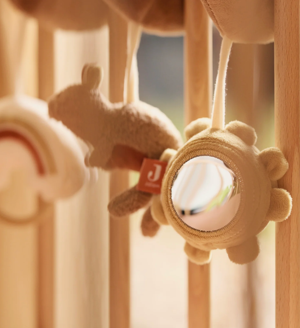 Cette spirale d'activités est parfaite pour la poussette ou le siège auto, avec un soleil, un kangourou et un arc-en-ciel, cette spirale offre de nombreux moments de jeu. Elle est équipée d’un miroir, d’un tissu froissé et d’un petit grelot joyeux – idéal pour stimuler les sens de votre bébé. Grâce aux boucles pratiques de chaque côté, vous pouvez facilement fixer la spirale au parc ou au siège auto. Une joyeuse aventure à découvrir à la maison ou en déplacement !