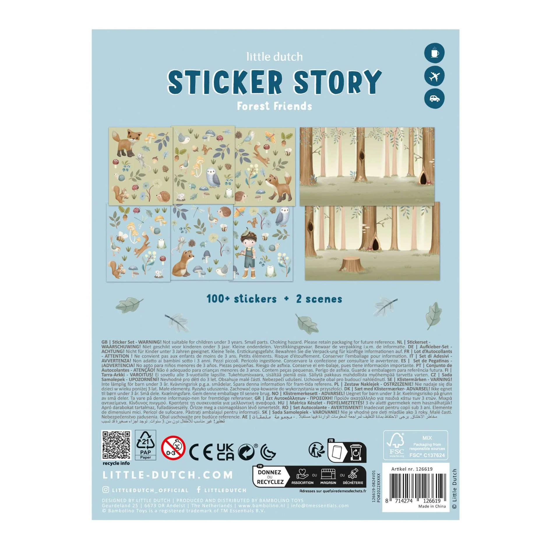 Votre mini s'embarque dans dans une aventure en forêt. Dans la pochette pratique, il y a plus de cent autocollants et deux arrière-plans qui invitent à des heures de plaisir à coller dans le monde des animaux de la forêt et de leurs petits amis.