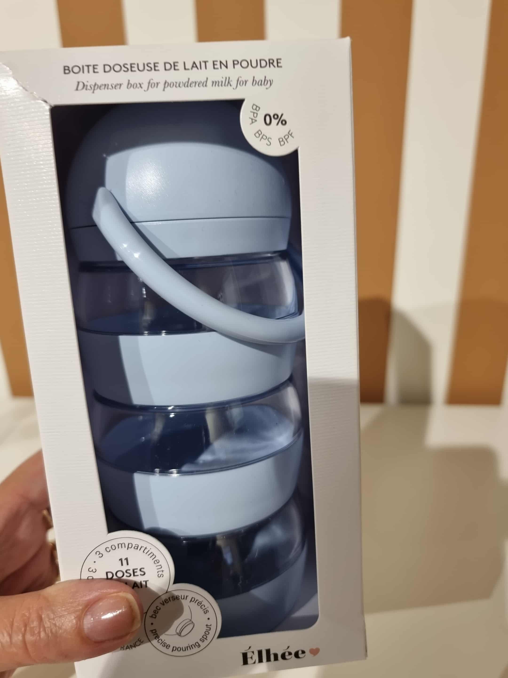 Les 3 compartiments sont 100% hermétiques et peuvent contenir chacun jusqu’à 11 doses de lait en poudre. Le bec verseur permet un transvasement précis, sans en renverser partout !