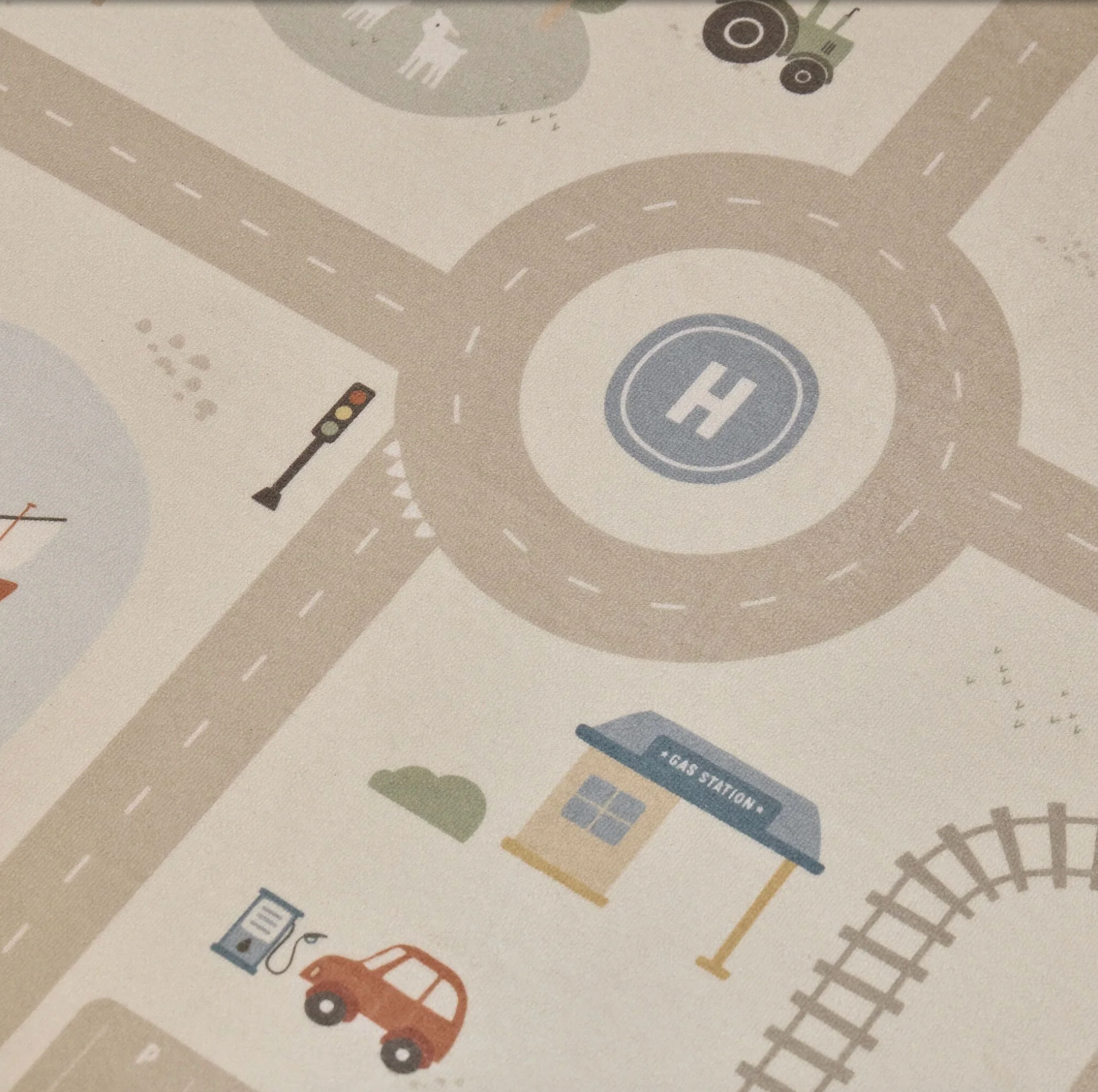 Entrez dans un monde plein d'aventures avec ce tapis de jeu doux aux tons neutres. Découvrez avec votre enfant les différentes scènes, telles que des routes, des trains et des plans d'eau. Parfait à combiner avec tous ses véhicules pour un plaisir de jeu sans fin. Fabriqué avec un matériau confortable et idéal pour des heures de découverte et de jeu.