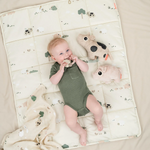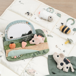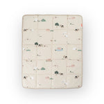 Facile à plier, ce tapis est idéal pour les visites ou les week-ends. Réversible, avec un joli imprimé d'un côté et une texture sable douce de l'autre, il allie polyvalence et style. Orné de motifs adorables représentant Dotti, Pigee et Sheepy, ce tapis d'éveil ajoutera une touche ludique aux aventures de votre bébé.