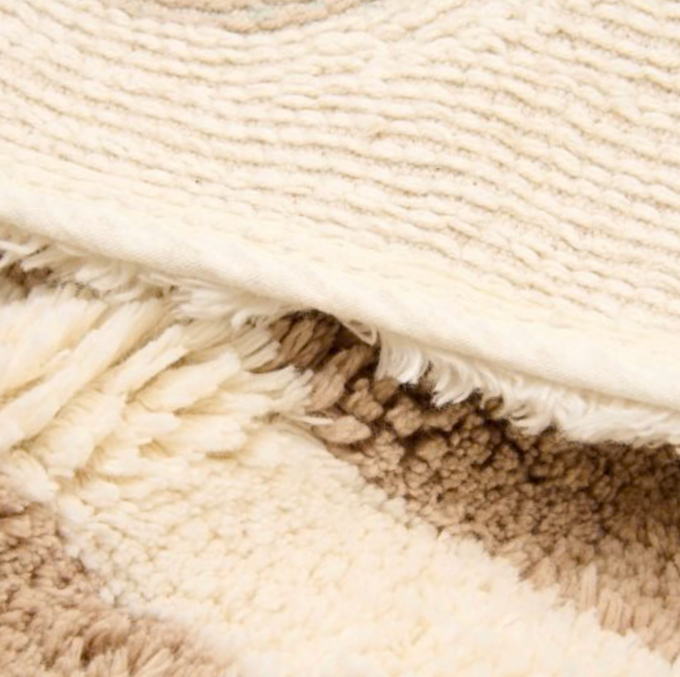 Fabriqué à 100 % en coton biologique et doté d'un envers antidérapant en latex, le tapis se nettoie facilement à la machine à laver et au sèche-linge.