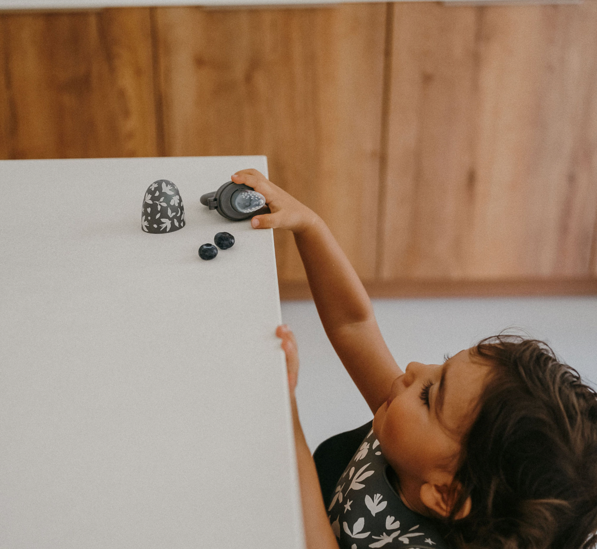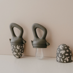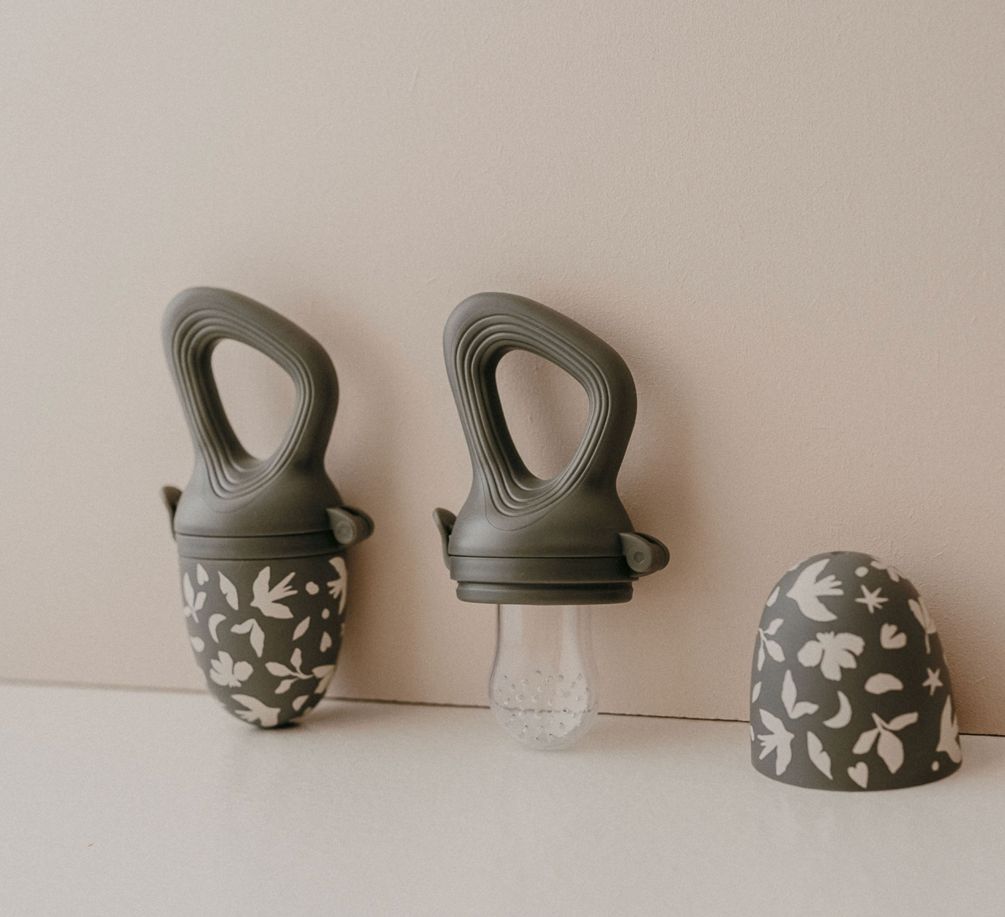 La tétine d'apprentissage comporte de petits trous qui ne laissent passer que de minuscules particules de nourriture pour que le bébé puisse s’alimenter lui-même. Livrée avec un capuchon de protection qui permet de garder l’embout propre et hygiénique.
