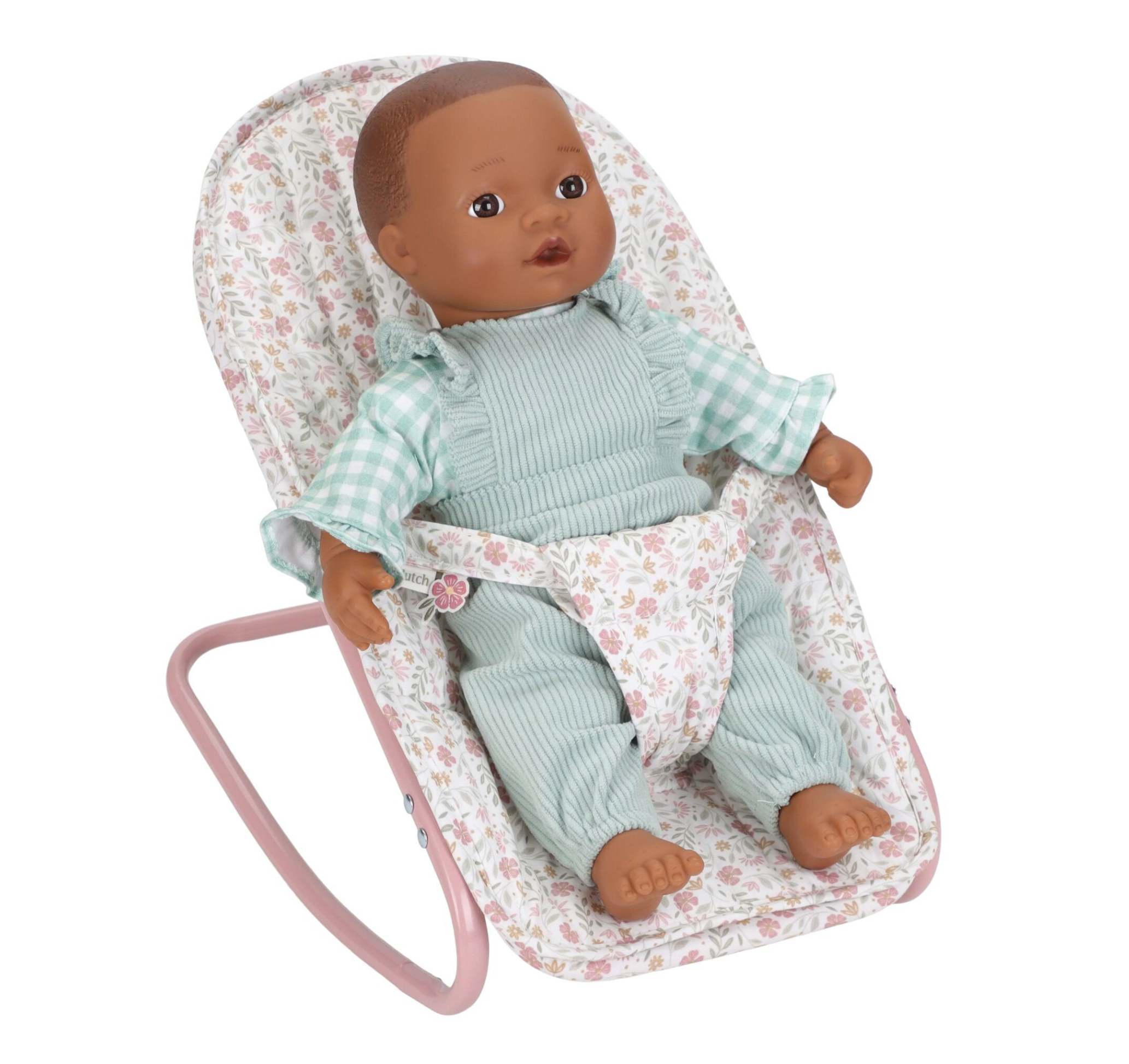 Votre mini donne à sa poupée un endroit confortable avec ce transat de poupée en métal. Le transat est léger et équipé d'une ceinture de sécurité robuste, de sorte que la poupée est bien assise et en toute sécurité. Parfait pour les petits parents de poupées qui aiment s'occuper de leur poupée pendant l'heure du dîner. La chaise de poupée s'adapte facilement à une table de jeu, afin que votre poupée puisse participer à tout moment de la journée.