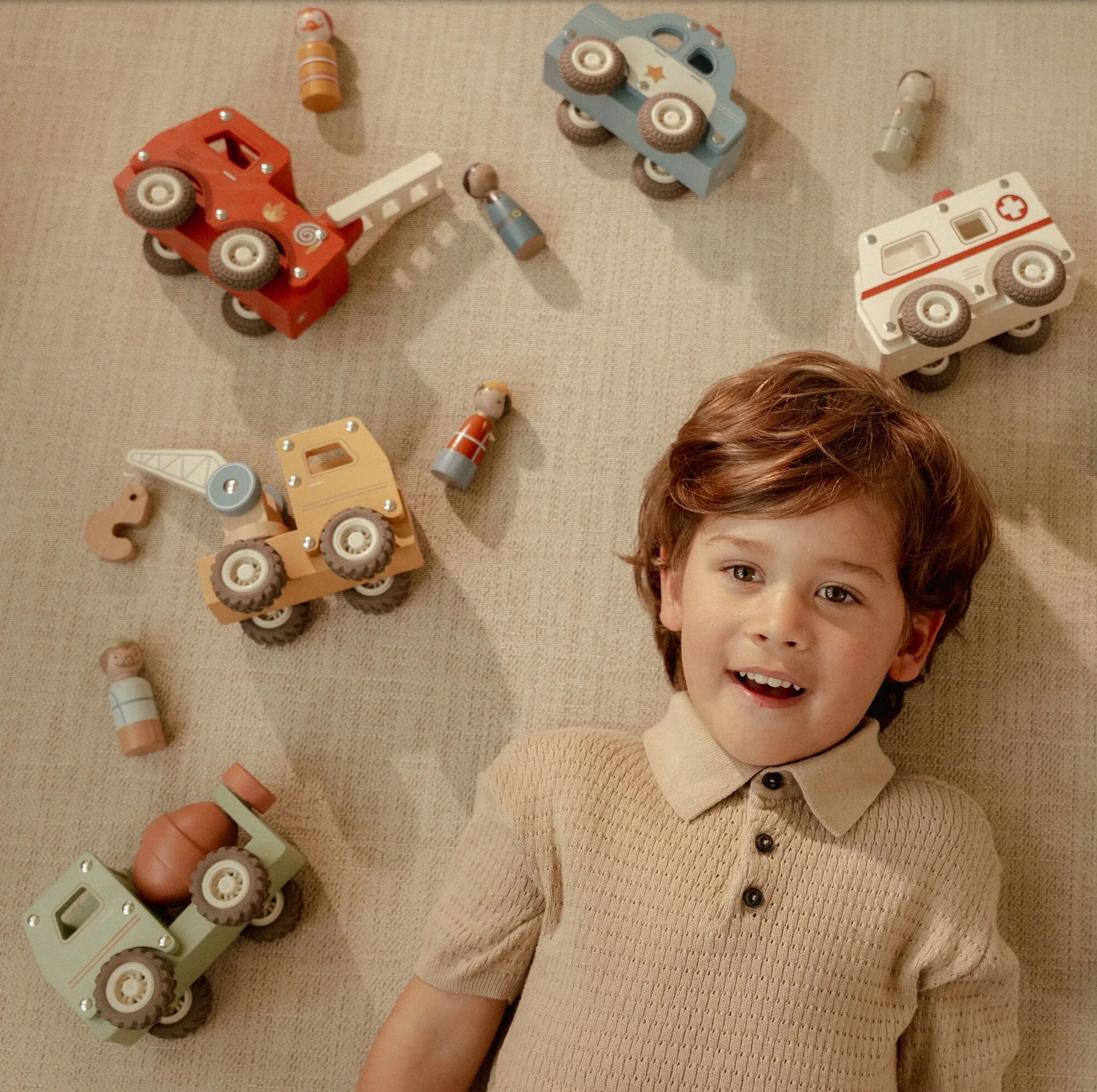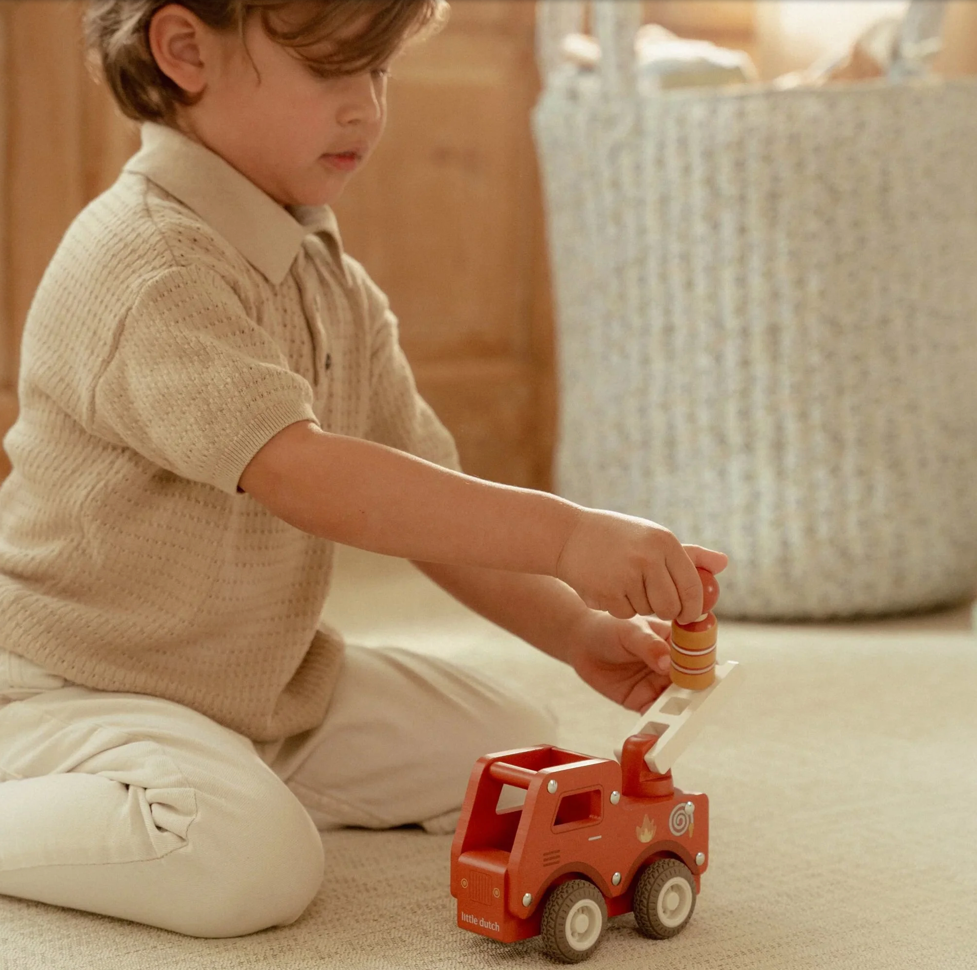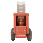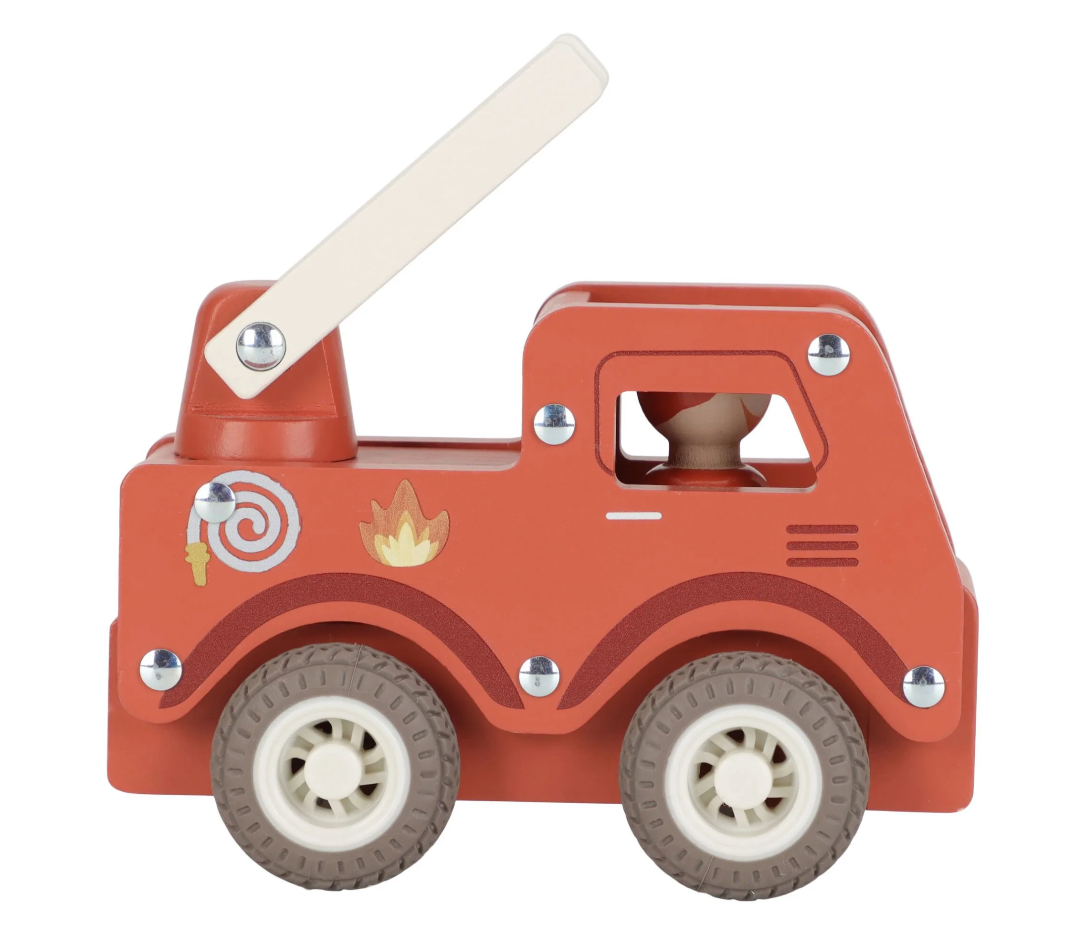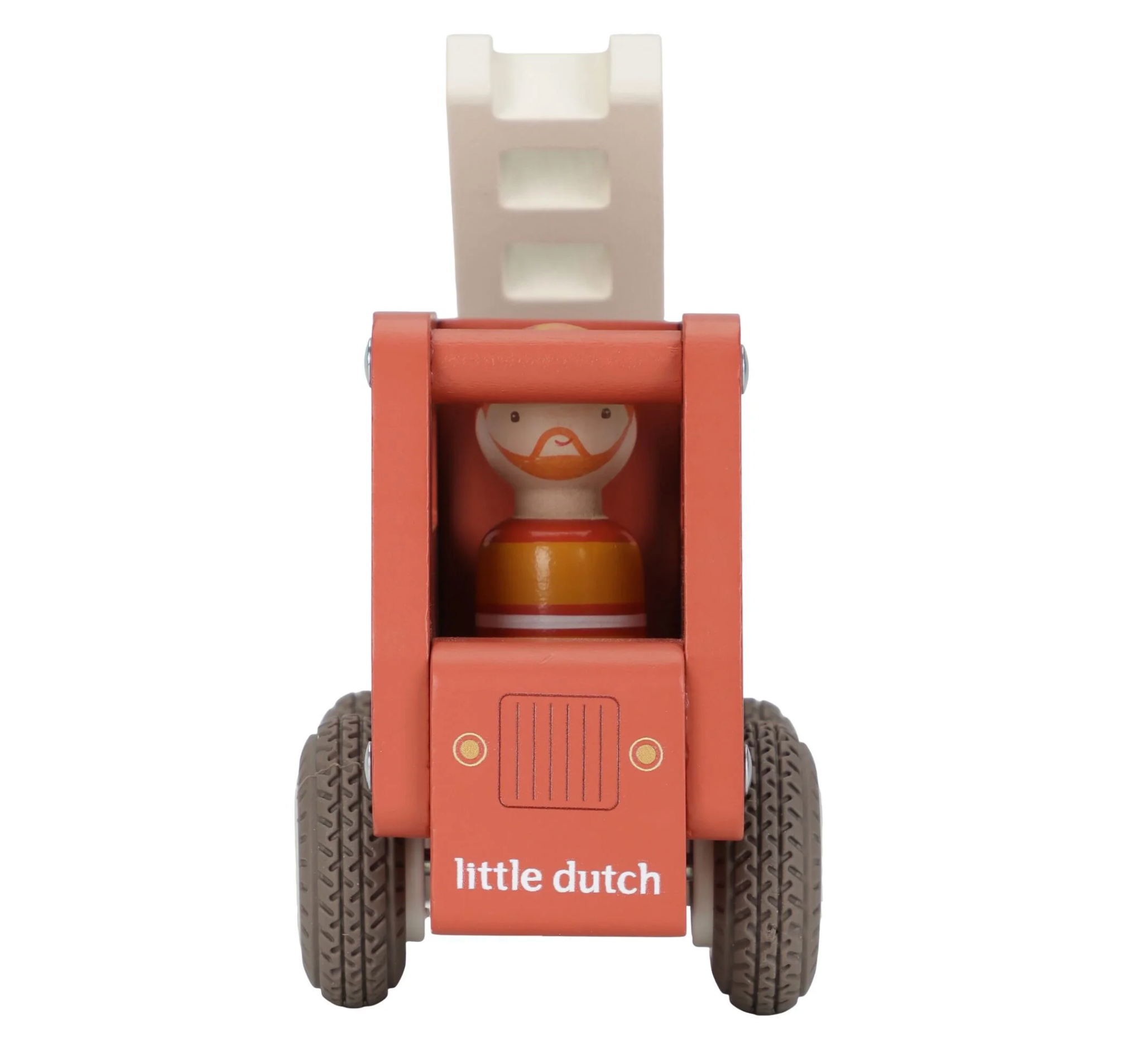 Avec ce camion de pompier en bois, vous êtes toujours prêt à intervenir. La voiture est équipée d'une échelle extensible et est livrée avec un pompier en bois robuste. La construction en bois solide et les roues en caoutchouc assurent des trajets en douceur dans toute la pièce. Grâce à sa conception ouverte, les enfants peuvent facilement tenir et pousser le camion de pompier. Parfait pour les jeux imaginatifs et les missions de sauvetage palpitantes.