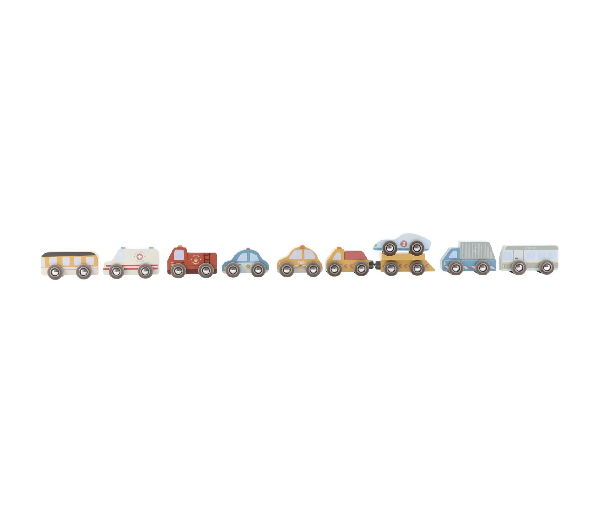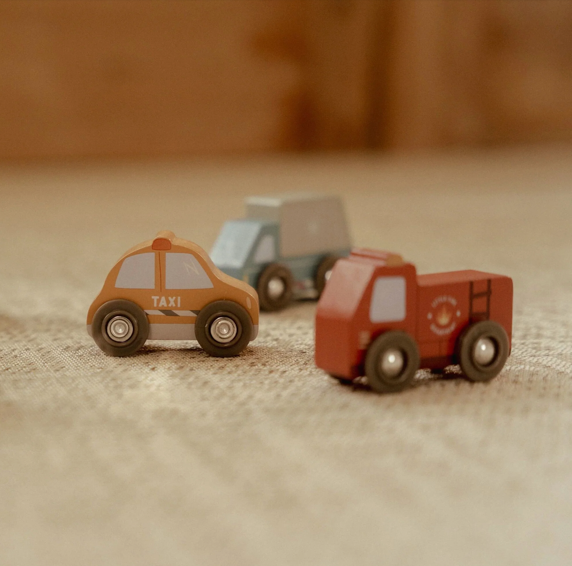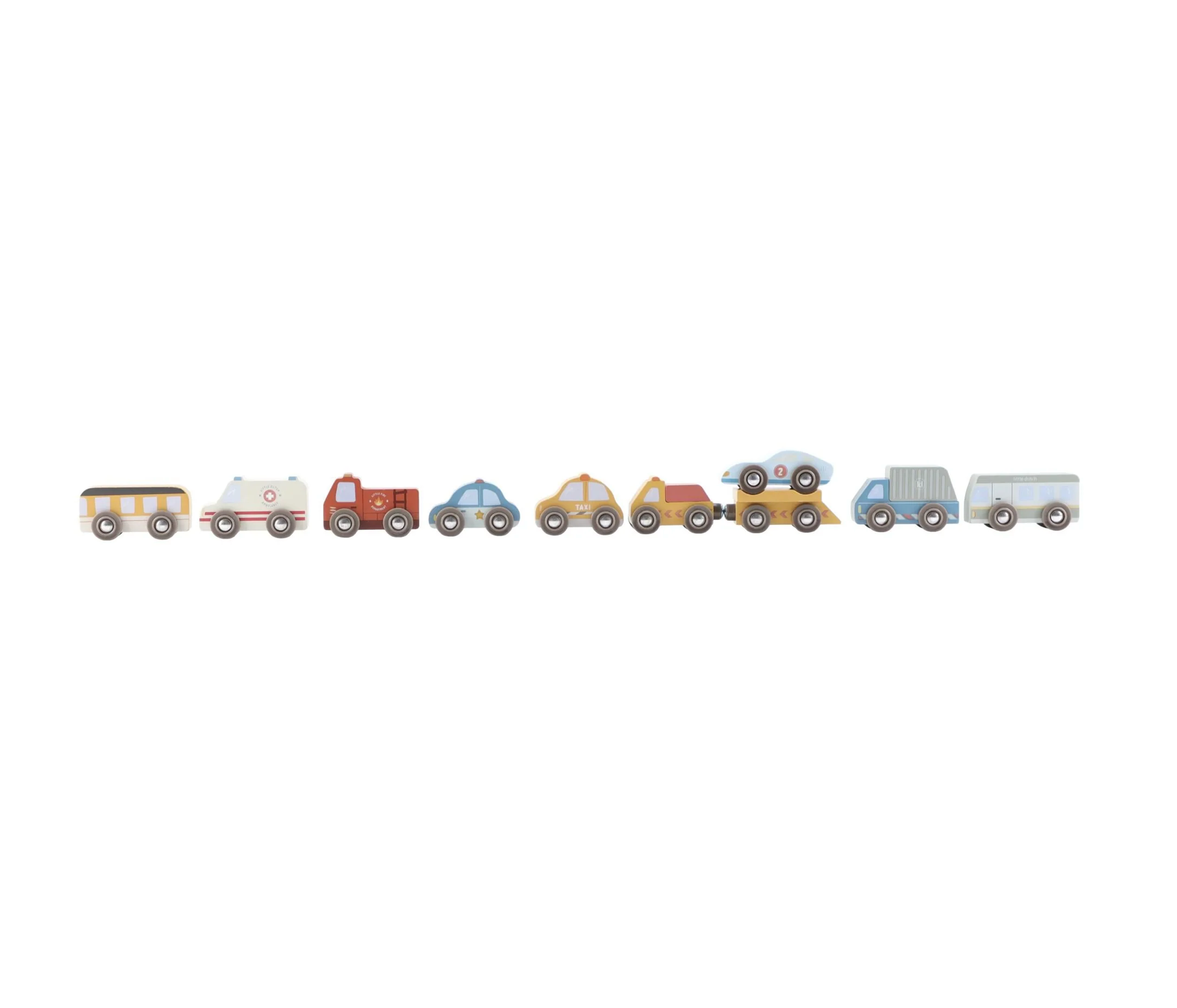 La ville est toujours en mouvement ! Ces véhicules d'entreprise et de secours en bois sont prêts à l'action et roulent sans effort sur les rails pour apporter de l'aide là où c'est nécessaire. Faites intervenir les pompiers, laissez la police patrouiller ou le camion livrer des marchandises.