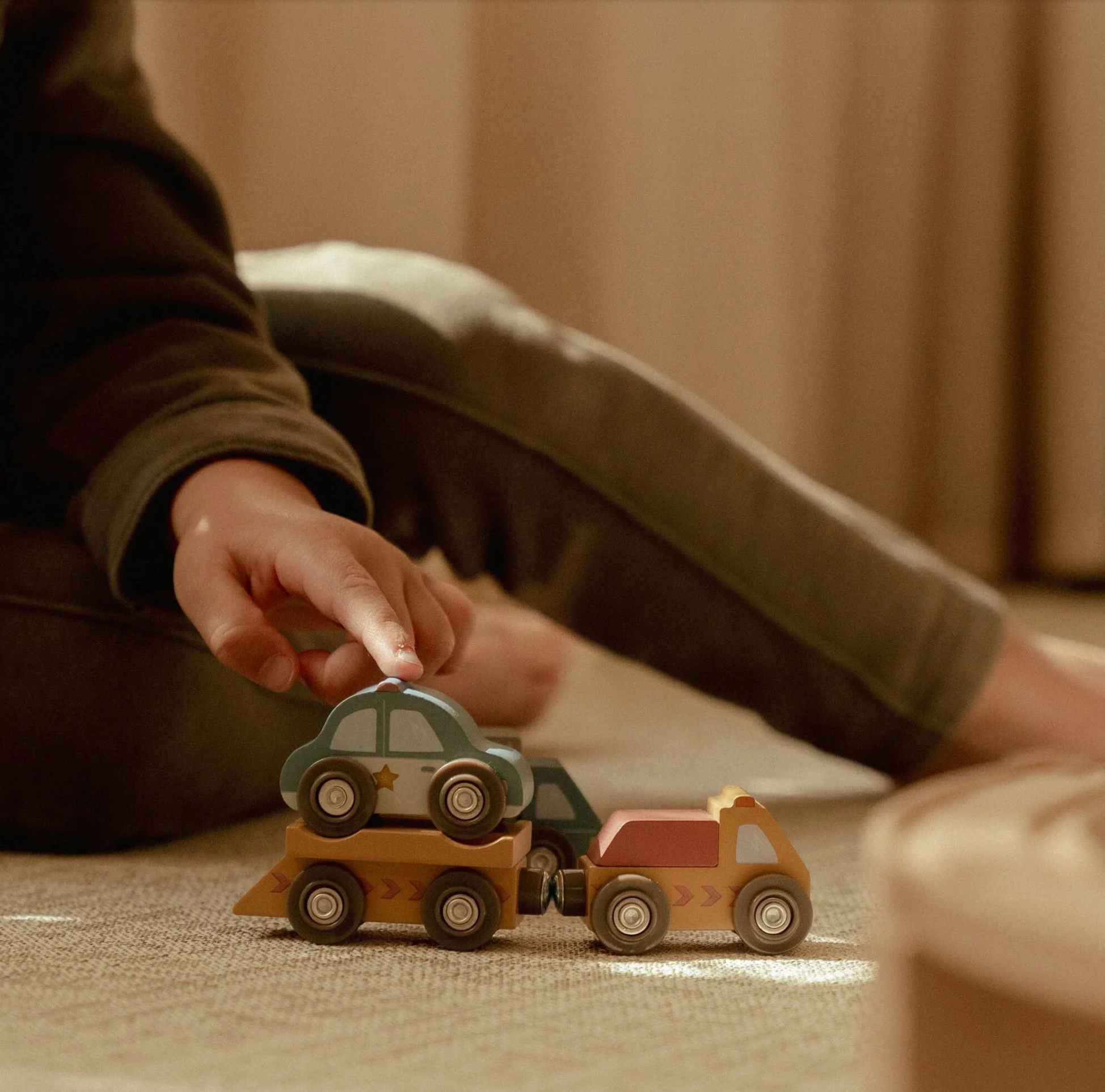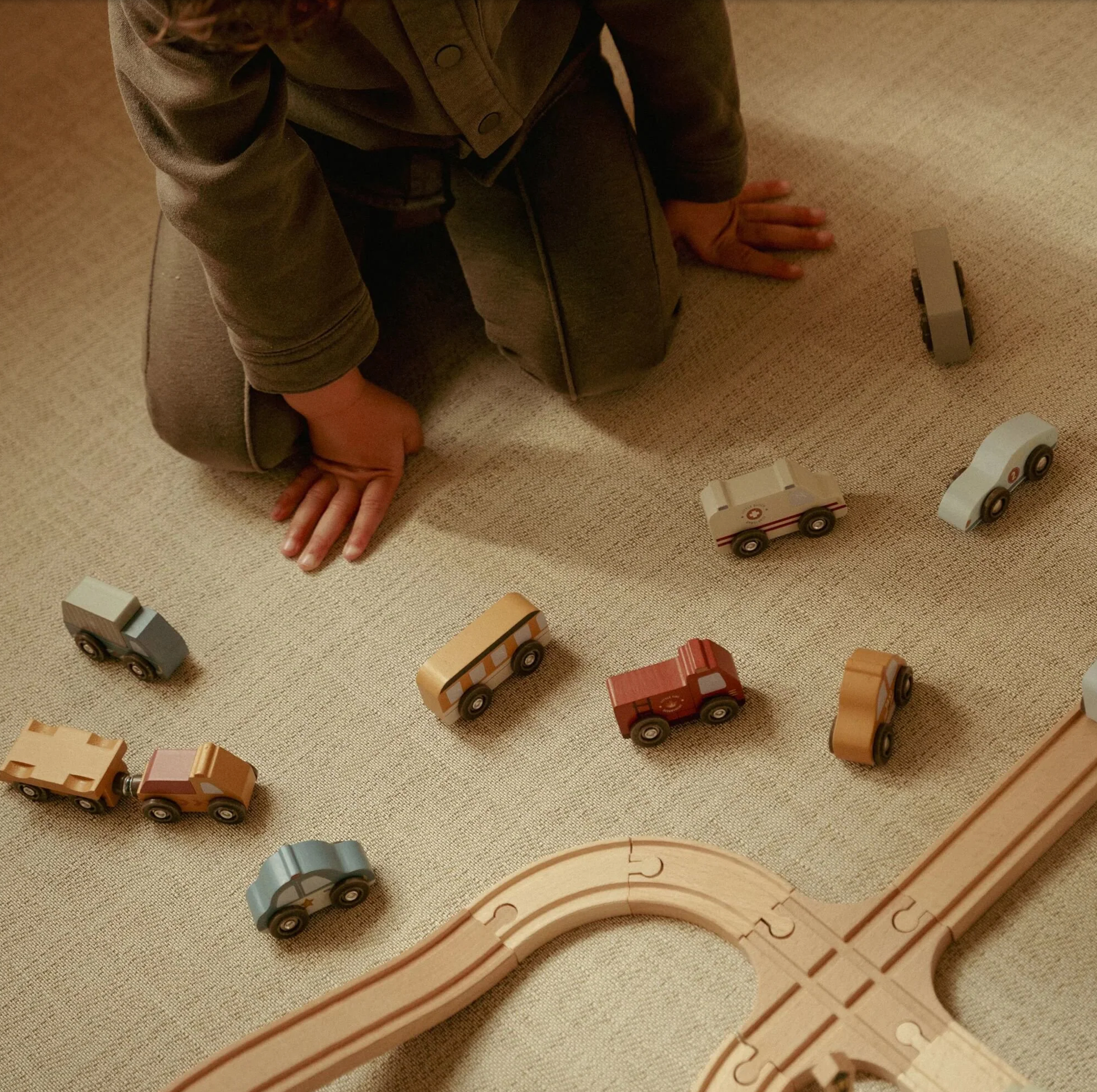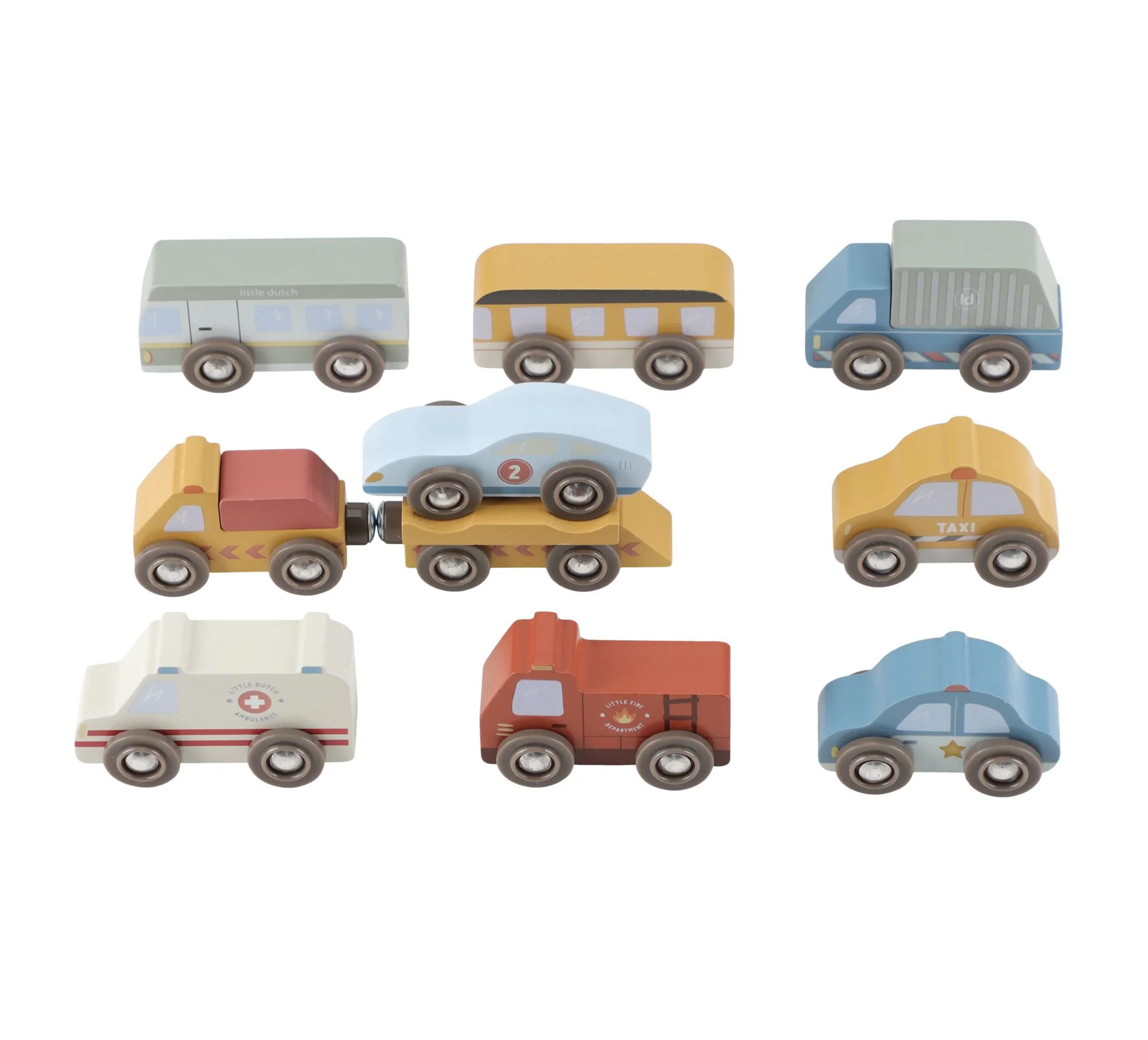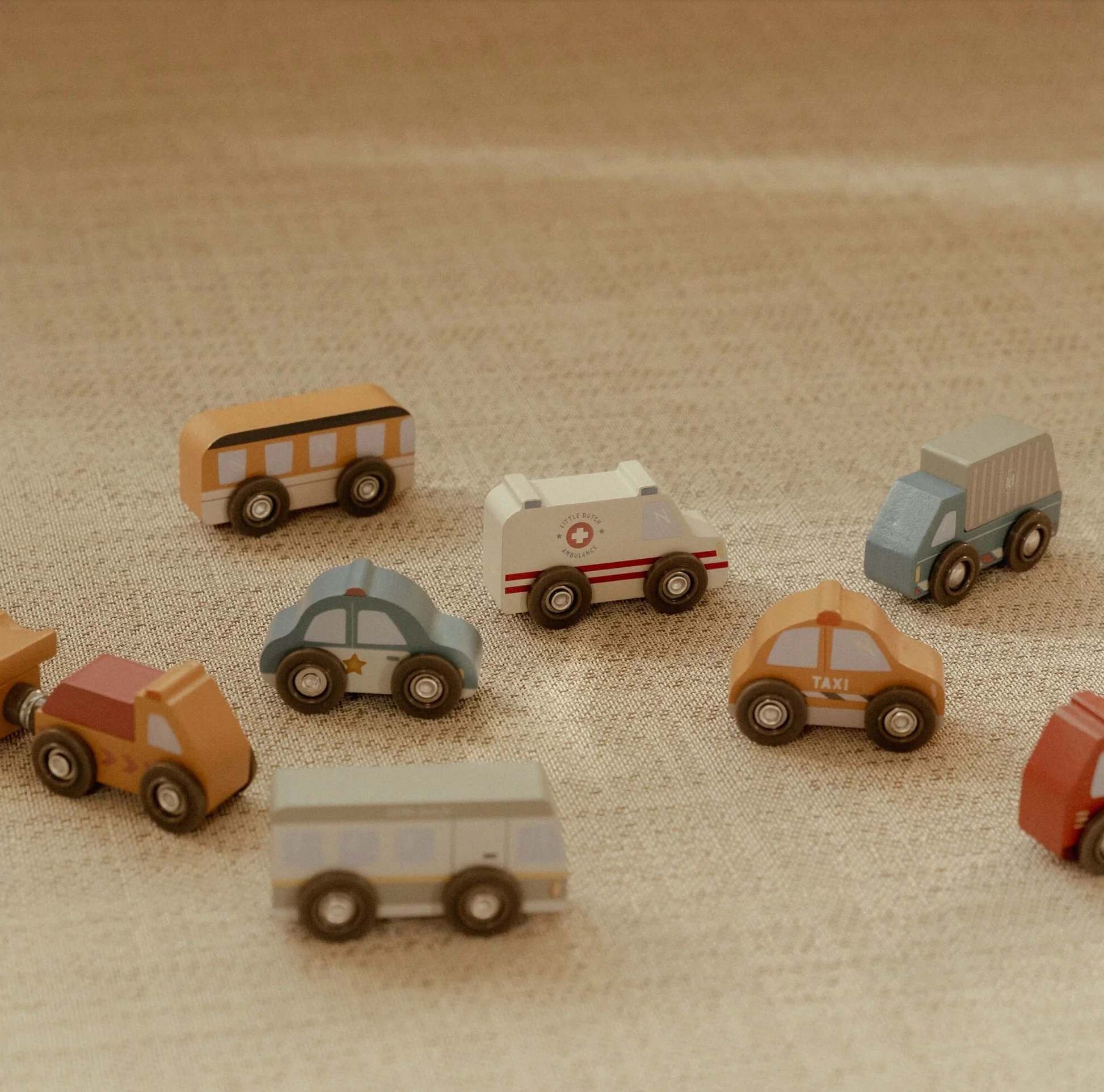 La ville est toujours en mouvement ! Ces véhicules d'entreprise et de secours en bois sont prêts à l'action et roulent sans effort sur les rails pour apporter de l'aide là où c'est nécessaire. Faites intervenir les pompiers, laissez la police patrouiller ou le camion livrer des marchandises.